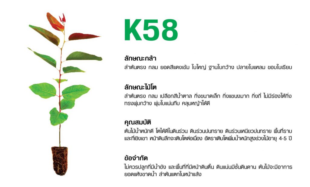 พันธุ์กล้าไม้ที่เราปลูก ประกอบด้วย K7 K62 และ K58